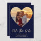 Create Your Own Simple, Gold and Blue, Heart Cutout For Photo, Wedding Save the Date. Add Your Own Photo, Add Your Names, Add Your Wedding Date, Add Your Wedding Location and Make It Your Own.