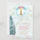 Gold Blue Pine Tree Winter Onederland Birthday Inv Invitation