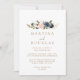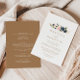 Gold Blue Pink Flowers Back & Front Wedding Invitation