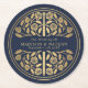 Gold Blue Royal Medieval Sword Wedding Round Paper Coaster