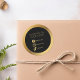 Seal mailers and gift wrap with a modern round label that highlights a handmade by line, elegant script, and space for social web link handles to drive follows after every Etsy store order. The bold black centre and luxe gold effect ring create high contrast for small business packaging and product labelling, with clear areas for Facebook, Instagram, and TikTok account names. Personalisation is fully supported. Update the name, message, and icons to match brand style. The gold effect is a printed.