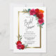 An elegant gold-bordered red floral bridal shower invitation.