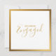 Announce your special celebration with this modern engagement party invitation featuring a bold gold effect square border on a clean white background. Elegant script typography adds a luxurious touch, while the simple layout keeps it easy to read. Personalise with your names and party details to create a timeless and sophisticated announcement. Please note the gold colour is printed.