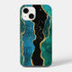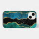 Gold Border Teal Agate Sparkle Monogram iPhone Case