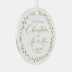 Personalised first Christmas ornaments feature elegant trendy Mr. and Mrs. script and botanical leaves in gold colour, with couple photo on the back, modern and simple.