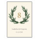 Gold Bow & Evergreen Pine Wreath Wedding Ivory Table Number