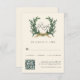 Gold Bow & Green Pine Wreath Wedding QR Code Ivory RSVP Card