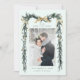 This wedding photo save the date features a watercolor winter greenery garland adorned with pine branches, holly berries, botanical foliage, gold ribbon bows, and simple calligraphy. For more advanced customisation of this design, please click the BLUE DESIGN TOOL BUTTON above! Matching items are also available.