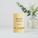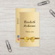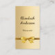 A faux gold looking background. Decorated with a golden bow. Personalise and add your name, title and contact information. Add your website url/link to the Qr code. With Facebook and Instagram icons. Black text.