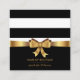 A discount coupon for a chic, elegant fashion boutique with bold black and white horizontal striped pattern, a PRINTED gold sating ribbon with a GOLDEN BOW and a black bottom portion you can personalise with your name and your monogram initial in gorgeous script fonts.