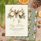 Gold Bow Watercolor Foliage Beige Christmas Holiday Card