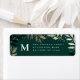An elegant holiday return address label featuring hand drawn pine branches in a festive gold and green Christmas colour palette designed by Stacey Meacham.