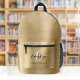 Gold Brushed Metal Black White Monogram Name Printed Backpack