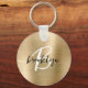 Gold Brushed Metal Black White Script Monogram Key Ring