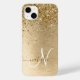 Gold Brushed Metal Glitter Monogram Name Case-Mate iPhone Case
