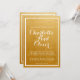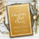 Add a modern elegant vibe to your wedding invitation with a swash script calligraphy style on a brushed gold metallic background with white type and border overlay.