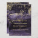 An elegant and sophisticated dark purple and gold wedding invitation featuring a deep and luxurious velvety amethyst modern art painting with gold brush strokes and gold colour text.