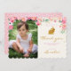 Gold Bunny Pink Floral Thank you card