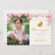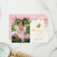 This is the perfect way to thank your guests for making your little bunny's birthday special. Hand painted watercolor flowers in shades of pink mingle with gold dots to frame the photo of your sweet girl. Gold bunny rests atop the thank you text completing this sweet card. Thank you card has matching birthday invitation available. Pink with white polka dots on the reverse.