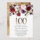 Gold Burgundy Floral Elegant 100th Birthday Party Invitation