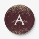 Gold Burgundy Glitter Sparkle Monogram Birthday Paper Plate