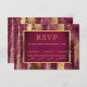 Gold and burgundy strokes and confetti wedding RSVP card. An elegant design that showcases brush strokes in burgundy and gold and confetti. Your text is in a burgundy red frame with gold border. Choose it for a fall or winter wedding.
