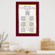 Add your own special touch to this elegant design featuring modern script, burgundy and black text including a starry gold Christmas tree with a metallic gold frame with a burgundy background. This seating chart design features the bride and groom's names along with the words "Eat, Drink, and Be Merry" and "Please Find Your Seat". Templates are provided for up to seven tables with up to 8 or 9 names per table.
