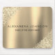 Gold Glitter Faux Sparkle Glitter Metallic Foil Minimalist Business Mouse Pad with black lettered typography for the monogram. The Girly Business Supplies can be customised with your name. Please contact the designer for customised matching items.