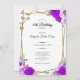 This elegant purple and gold 18th birthday debut invitation has purple roses and gold butterflies with a personalizable template to create your own message. Add your photo on the back to personalize the image. The invitation template is customizable in the listing editor and is also available as a digital download that's printable after you personalize it. This is a modern, blingy design that's still traditional enough for an elegant milestone birthday.