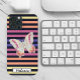 Beautiful bright butterfly markedly on this colorfuli iPhone case personalized with your name. The pretty colors of lavender, fuchsia pink, turquoise blue, orange and yellow create a great color palette on a light green background. The motif icon design elements also include whimsical circle stripes. Customize for yourself or for a gift. Butterflies are always popular and good luck, as well as modern, contemporary and designer. Full customizable. Coordinate with other products of the same color in this store, as well as with multi-color backgrounds.