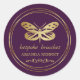 Modern and elegant Sticker with golden butterfly in a circular frame with decorative scroll below on a dark purple background. The background colour can be changed