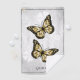 Personalise a unique towel for golfing with a Gold Butterfly Floral Personalised Golf Towel. Towel design features a pair of vibrant butterflies resting on a white floral vine against a light grey grunge background. Additional gift items available with this design as well as a variety of colours.