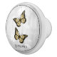 Add an elegant touch to cabinetry or furniture with a Gold Butterfly Floral Personalised Ceramic Pull. Pull design features a pair of vibrant butterflies resting on a white floral vine against a light grey grunge background. Additional gift items available with this design as well as a variety of colours.