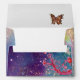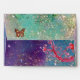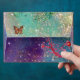 GOLD BUTTERFLY IN TEAL AQUA BLUE SPARKLES SWIRLS ENVELOPE