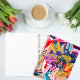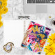Just the perfect planner for you! No matter what the week, month, or year throws at you, you can handle it with this beautiful monogrammed name initial spiral planner. The design on the front and back covers of this stunning planner, features a majestic magical golden fairy-like butterfly with its gorgeous long trail of golden swirls, flying over a field of beautiful and unique liquified marble abstract flowers, with different tones of purple, blue, pink, red, cream and gold petals.