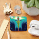 GOLD CADUCEUS MEDICAL SYMBOL Aqua Blue Turquoise Key Ring