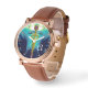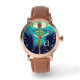 GOLD CADUCEUS MONOGRAM ,Aqua Blue,Teal Watch