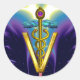 GOLD CADUCEUS VETERINARY SYMBOL Blue Purple Classic Round Sticker