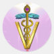 GOLD CADUCEUS VETERINARY SYMBOL Pink White Classic Round Sticker