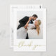 This design features a modern simple gold calligraphy script, a minimalist minimal two 2 photo, a wedding photo photography couple, a basic clean contemporary template, an elegant typography script text font, a photo wedding thank you cards, a custom customised personalised design, a golden handwritten lettering font, a creative simplistic elegant script, a calligraphy wedding budget friendly thank you cards