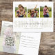 this design features a gold calligraphy script multi photo, with a QR code website online URL, with a scan for more information info, a postcard save the date, a simple minimalist 4 four picture, with a vellum clear photo overlay on the back side, a modern classic save the date, for wedding engagement engaged couple, a trendy stylish calligraphy script, a creative simple typography style, a budget friendly wedding postcard