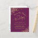 This beautiful save the date postcard features a gorgeous design with a cassis purple, magenta or berry coloured background, gold script calligraphy, and frilly ornate faux foil curls and swirls in the corners. The back has room for a custom note with your website and other information. Beautiful way to let your friends and family know about your upcoming wedding.