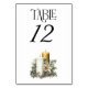 Winter wedding table number with elegant typography and romantic candles in gold and white, decorated with holly, golden berries and a poinsettia flower. For co-ordinating invitations, stationery and day-of-event decor, please browse my Holly Bells Wedding Collection or message me to add any additional items you need.