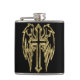 The flask itself is fine. It’s a cheap flask, obviously bought in bulk, however am prepared to overlook that. Given that it is a personalized item, I would have liked to have seen gift boxing instead of the generic packaging. Terrible printing, and/or quality. It’s a cheap, tacky vinyl. It is not cut straight and is also applied in a way that it is overhanging the bottom, causing the glue to catch on items and it will eventually roll and tear, damaging the wrap.