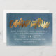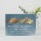 This is a typography brush hand lettering wedding invitation featuring celebrate with us in gold with ombre watercolor background