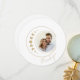 Express your gratitude with the captivating "Gold Celestial Wedding Round Thank You Cards." Against a pristine white background, these cards radiate a clean and minimalist charm. The golden crescent moon and a customisable photo of the couple, takes centre stage, symbolising gratitude and casting a celestial glow that mirrors the magic of your special day.