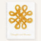 The design on this GOLD CELTIC KNOT 8.5"x11" spiral notebook is an original coloured pencil drawing of soft fuzzy gold wool roving yarn wound into a Celtic knot. The image is on the front and back. * Easily change "Thoughts and Dreams" with "Personalise this template". Change the font, font size and/or colour with Edit Design, and Edit Text. * Choose from different lines options for the inside, a hard or soft cover, and a spiral binding colour. * Other notebooks, and matching products are available in the CELTIC KNOTS category of my shop. ** If you'd like to transfer this design to another product type, shape, or size, please check my shop first to see if I have one already done, because I'll have fiddled with it to make the design fit just right and it will save you the bother. Sometimes designs transfer ok, sometimes they don't. Just fyi. If you need help or have a question please message me.