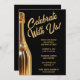 Gold Champagne Bottle on Black New Year's Eve Invitation