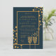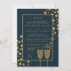 Gold Champagne Bubbles - Blue & Gold - Wedding Invitation