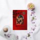 This elegant Chinese wedding save the date card features a beautiful real gold foil cherry blossom branch and double happiness symbol on a shimmering crimson red background.